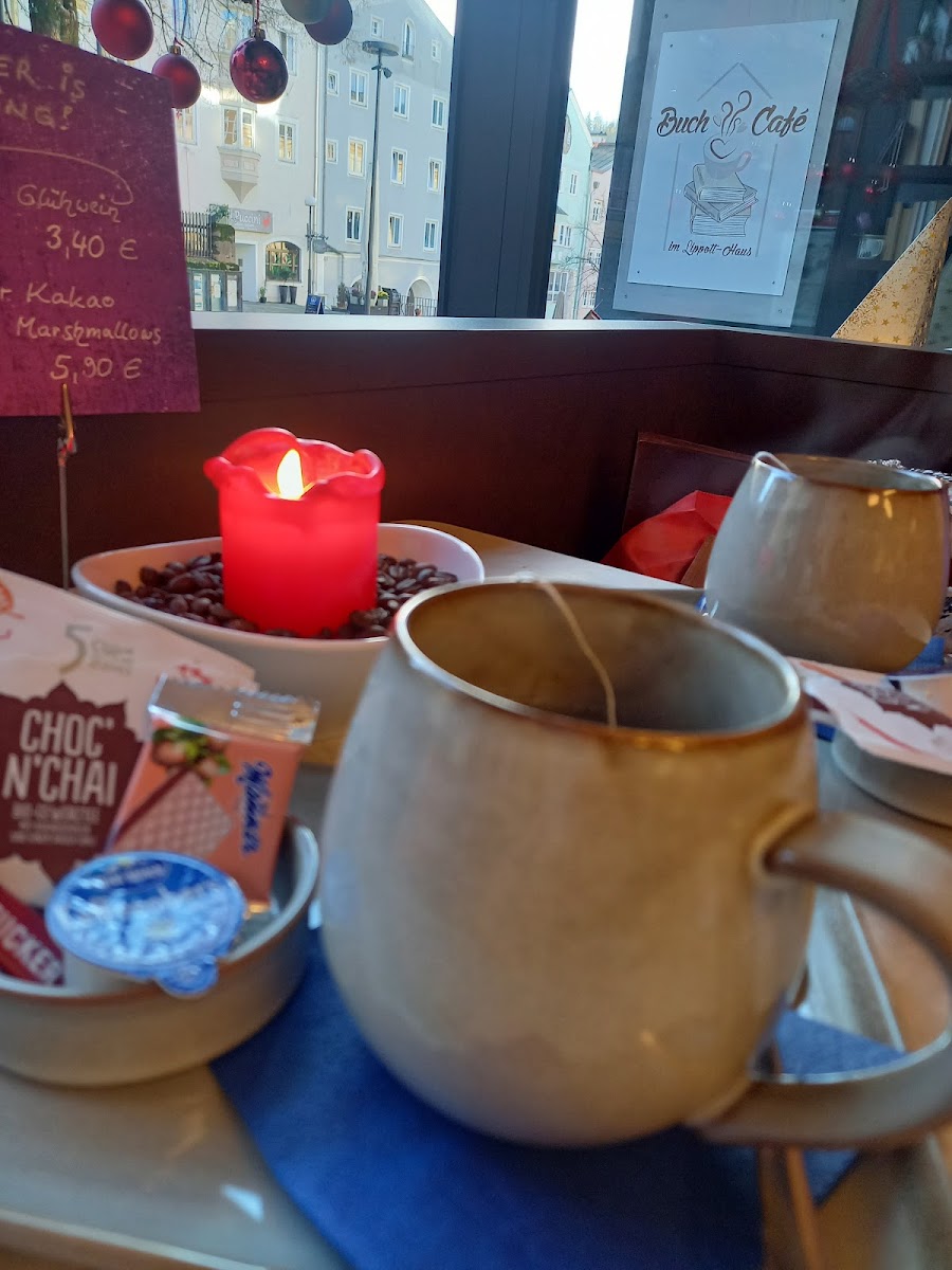 Das Buch-Café ist ein wirklich perfekter Ort. Kaffee und Bücher - eine wunderbare Kombination. Leckeres und Lesenswertes in einem. Dazu mitten in der Fußgängerzone in Kufstein mit Blick auf die Festung. Ein Lieblingsort!!!